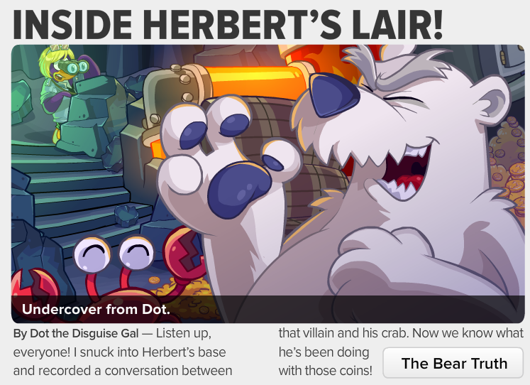 Hello penguins! There is a new newspaper! Check it out! The headline is about Herbert and his lair!